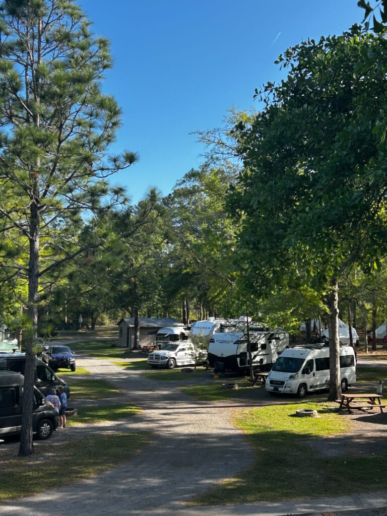 At Okefenokee Pastimes, we designed our RV area with real campers in mind. That means no awkward backing maneuvers down narrow dirt lanes and no wrestling with hoses in the dark. Our full hookup RV sites provide water, electric (30/50 amp), and sewer connections at every pad – so you can run your air conditioner, keep the coffee brewing, and wake up refreshed without draining your tanks.